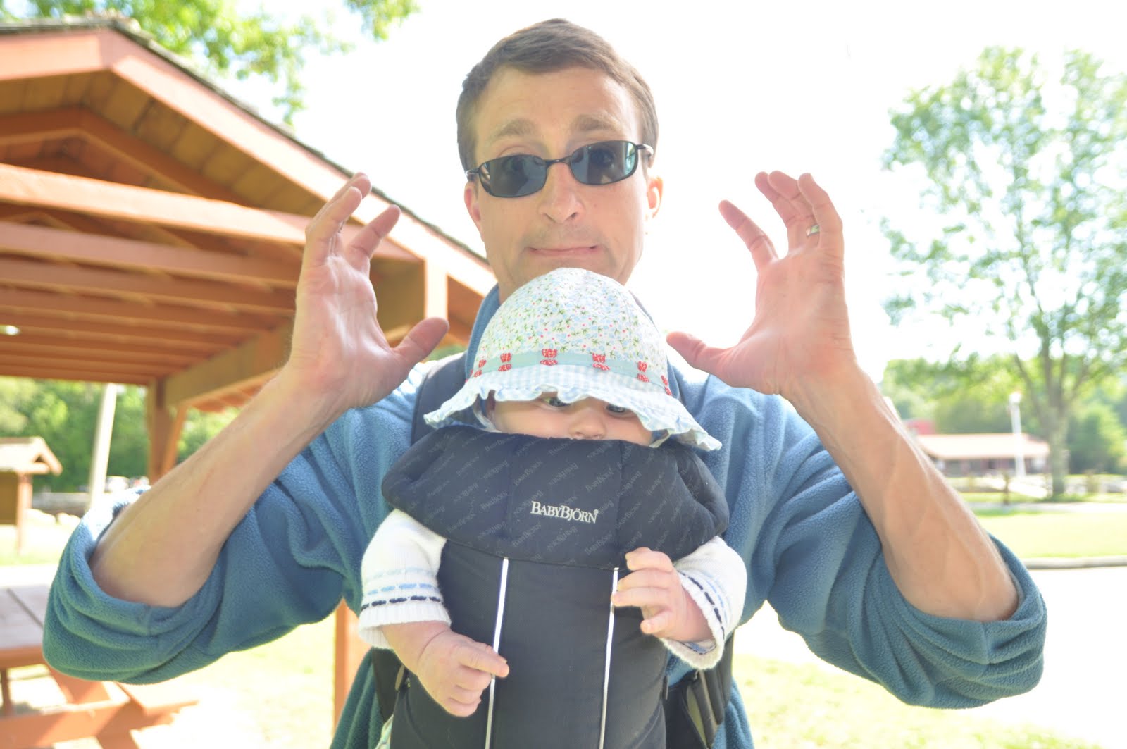 Ethan in the Baby Bjorn with Eric ready to explore Rockport.